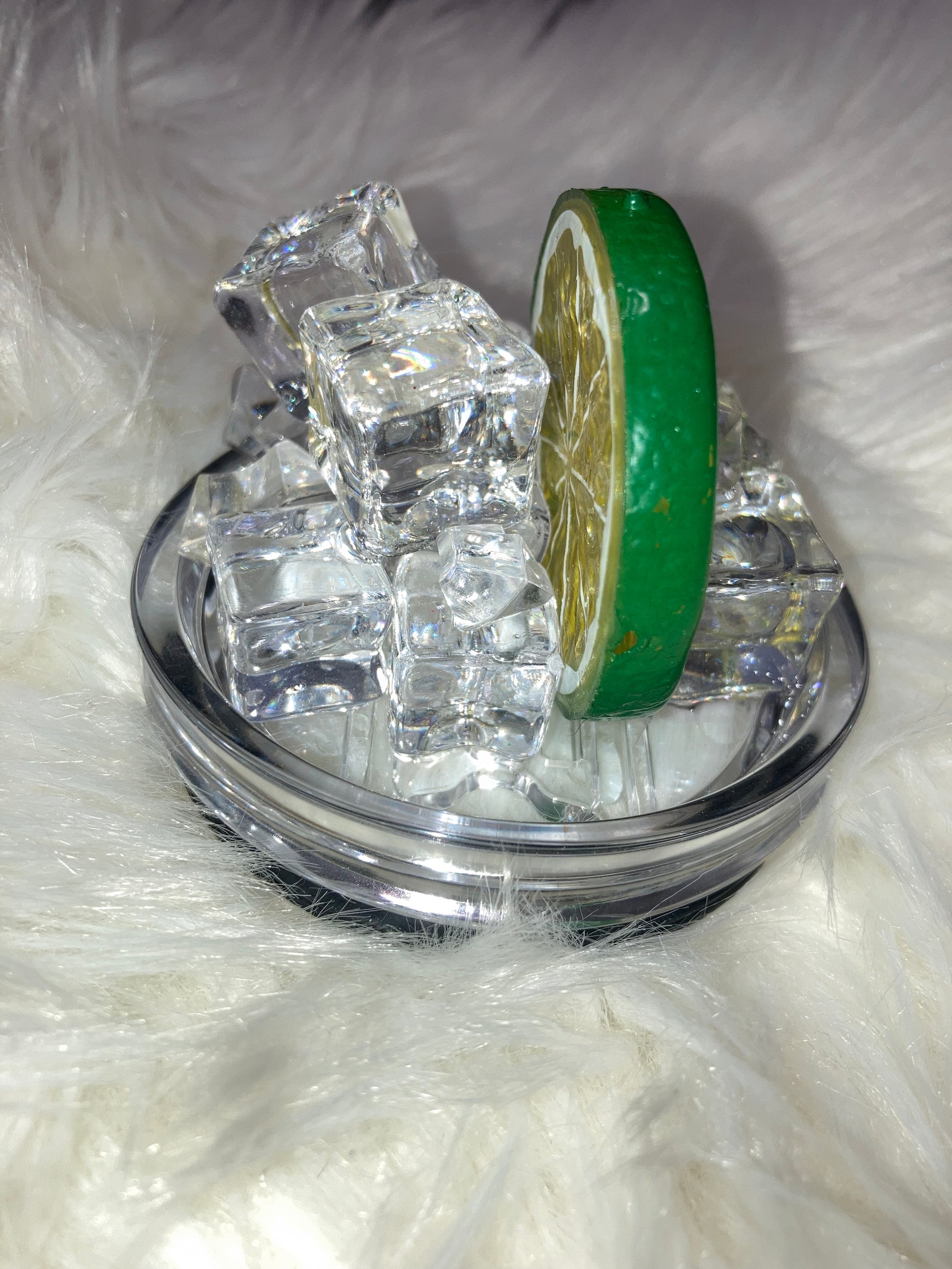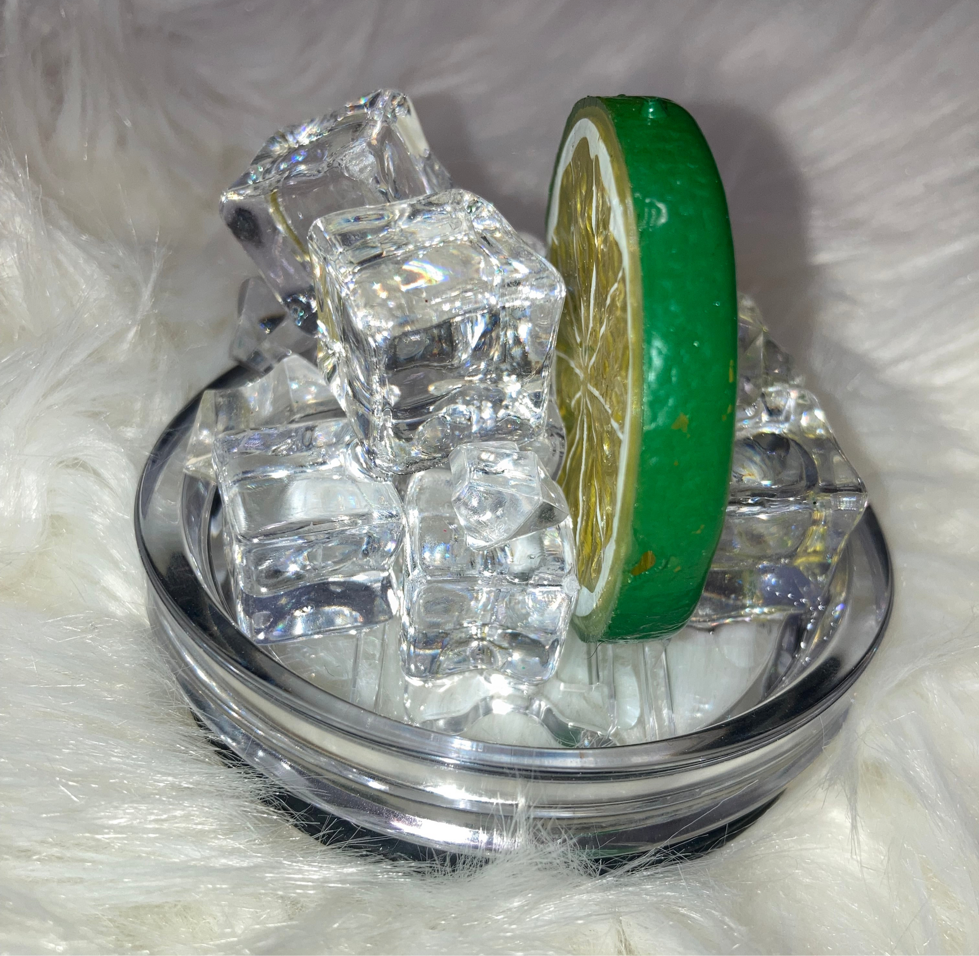 30oz Stainless Steel Tumbler with 3D ice topper with lime. Hot/Cold Beverages. Reusable Straws.